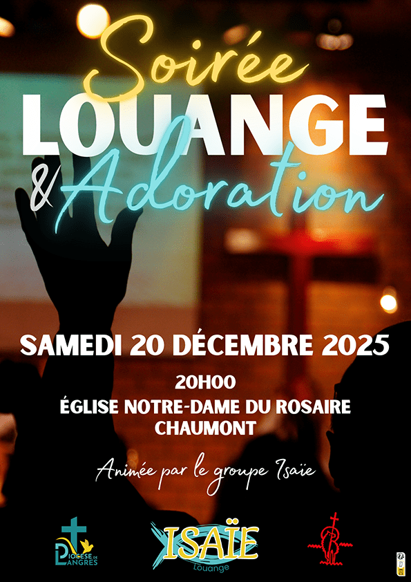 Le samedi 20 décembre 2025 à 20h, l’église Notre-Dame du Rosaire de Chaumont accueillera une soirée de louange animée par le groupeIsaïe. Isaïe c’est qui ? c’est quoi ? Isaïe, c’est d’abord l’un des quatre grands prophètes de la Bible. Il a notamment annoncé la venue du Christ « C’est pourquoi le Seigneur lui-même vous donnera un signe : Voici que la vierge est enceinte, elle enfantera un fils, qu’elle appellera Emmanuel (c’est-à-dire : Dieu-avecnous). » Isaïe 7, 14.Isaïe, c’est aussi le nom qu’a choisi de porter, en 2025, un groupe de jeunes chrétiens haut-marnais engagés. Comme proclamé dans la liturgie du baptême, «vous êtes membres du corps du Christ et vous participez à sa dignité de prêtre, prophète et roi. », c’est là l’essence de ce groupe : à l’image d’Isaïe, non pas annoncer la venue du Christ comme il l’a fait autrefois, mais témoigner de sa présence aujourd’hui, vivante et agissante au milieu de nous. Ils ont décidé de le faire en musique, avec la louange et l’adoration. Tout a commencé en 2023, à Écot-la-Combe, lorsque sept jeunes âgés de 16 à 20 ans se réunissent pour organiser une soirée de levée de fonds en vue d’un pèlerinage prévu pour l’été 2024. Ce premier projet rencontre un franc succès. Portés par la joie et l’unité vécues ce soir-là, ils décident de poursuivre l’aventure. De cette belle initiative naît officiellement le groupe Isaïe. Ils s’engagent à mettre leurs talents au service de l’Évangile, parcequ’être prophète aujourd’hui, pour eux, c’est oser poser un regard de foi sur le monde, discerner où Dieu est à l’œuvre, et s’y engager pleinement, sans crainte. Soyez les témoins de cet engagement et laissez le Christ agir en vous en venant vivre cette soirée de prière, de chant et de joie, portée par la foi et le talent de ces jeunes musiciens !Infos Pratiques :