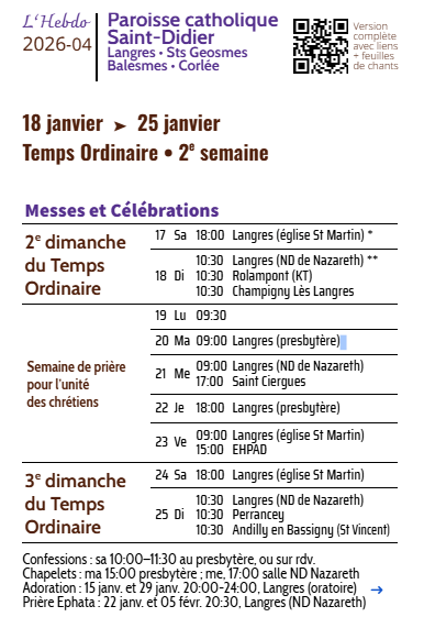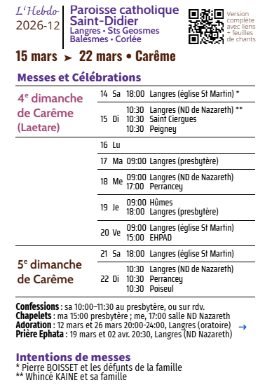 Chaque semaine, les horaires sont affichés aux portes des églises