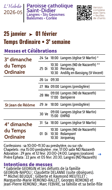Calendrier des messes