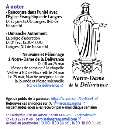 Presbytère : 1 bis rue Aubert – 52200 LANGRES